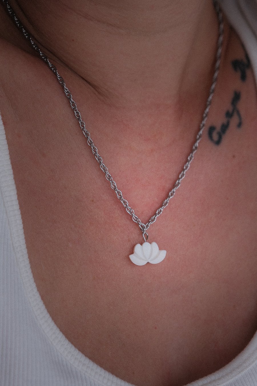 – Pendentif lotus en nacre finement gravé, pour une touche spirituelle et naturelle