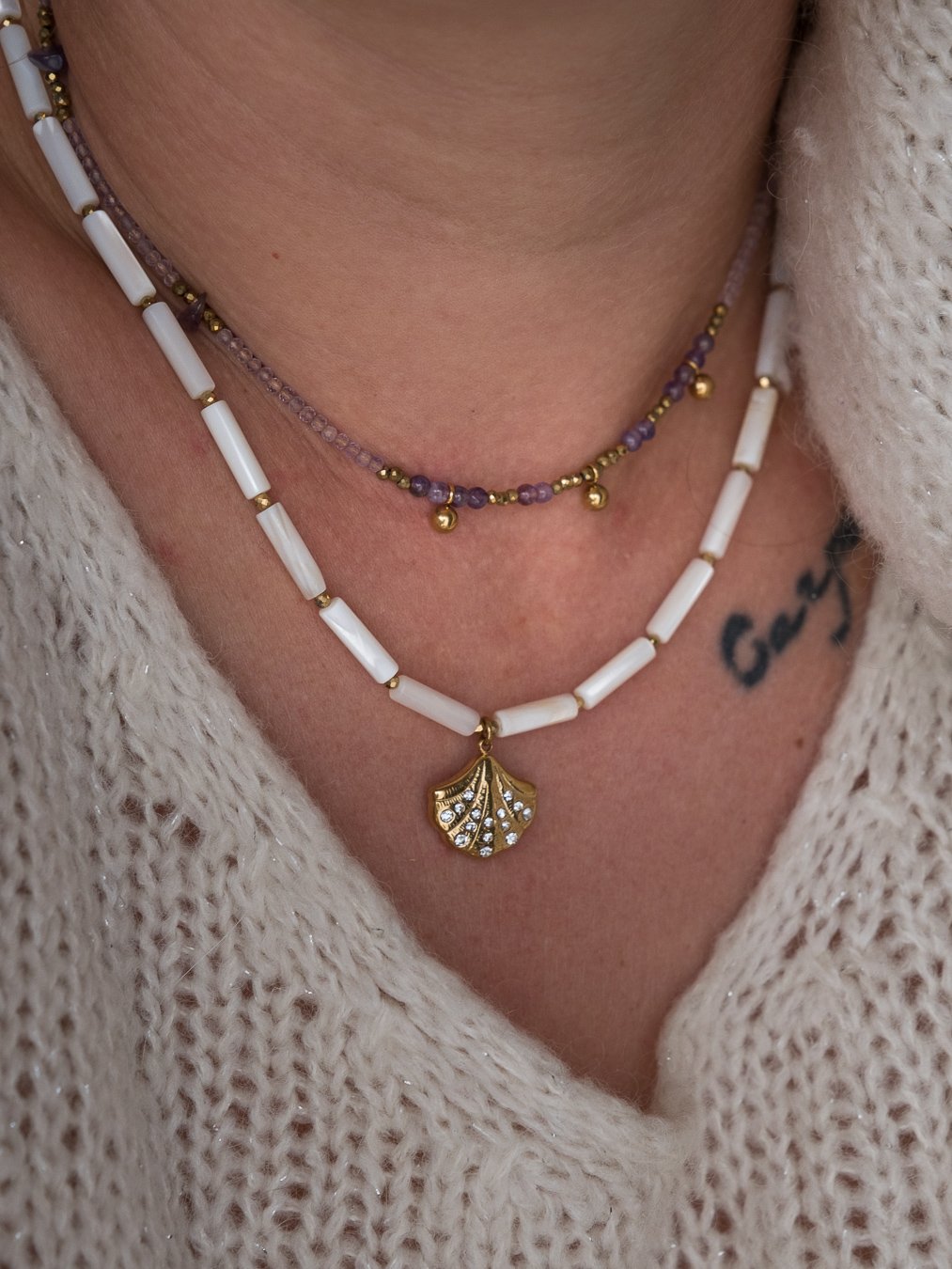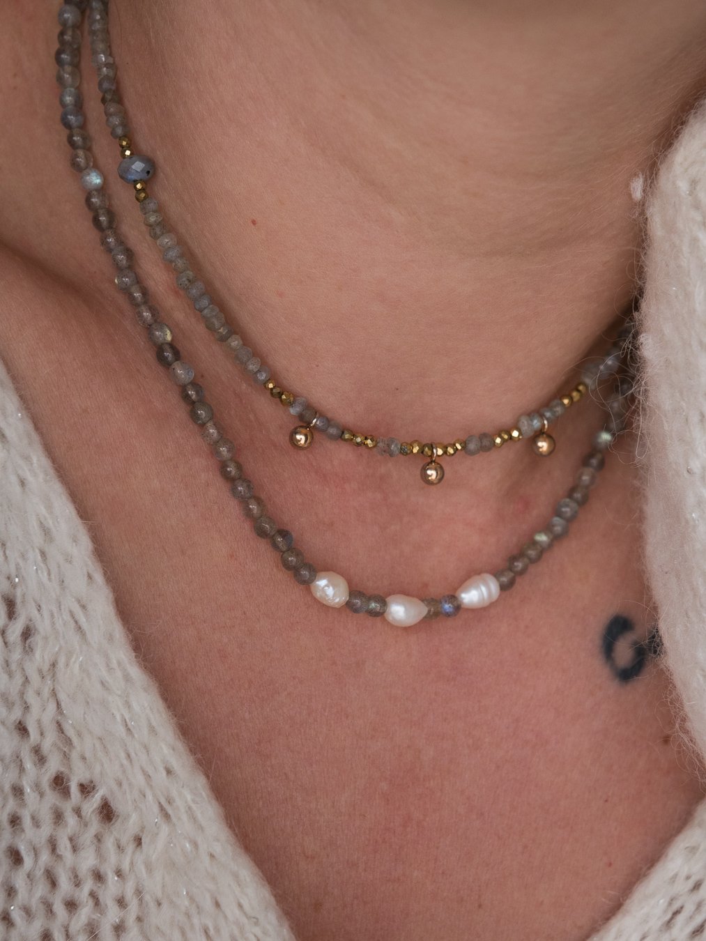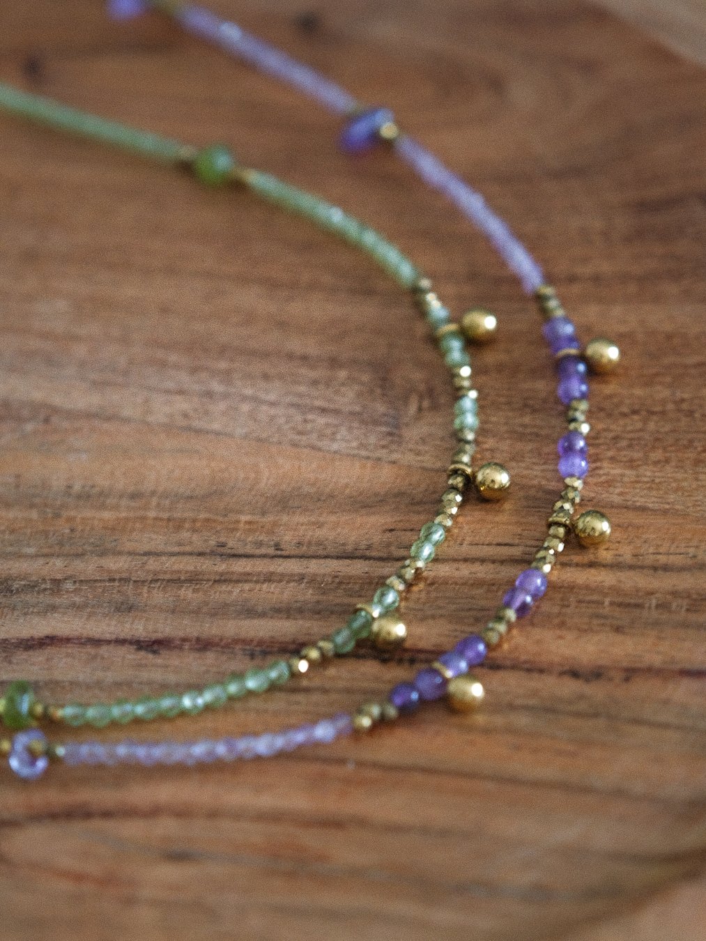 Le collier LIORA est un collier en pierres naturelles fines (Améthyste, Péridot, Pierre de Lune, Labradorite) orné de breloques boule. Un accessoire unique au style boho chic et ethnique, parfait pour sublimer toutes vos tenues.